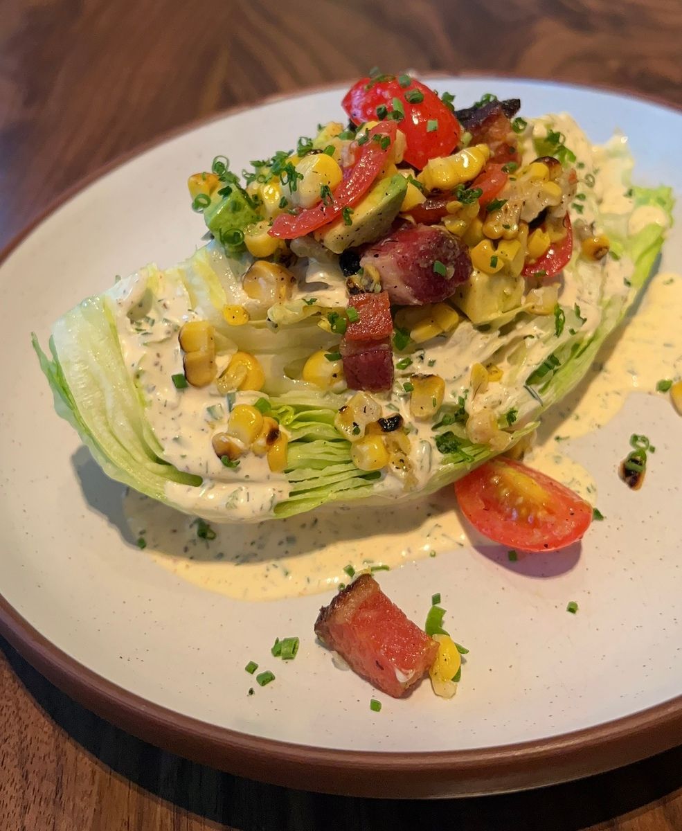 For the appetizer options, you have three great choices: Deviled Eggs, Fried Green Tomato BLTs and Iceberg Wedge Salad. We went with the Fried Green Tomatoes and the Wedge Salad. We shared them both and they were fantastic! The Buttermilk Ranch on this salad is insane. Get it if you are a big ranch person!