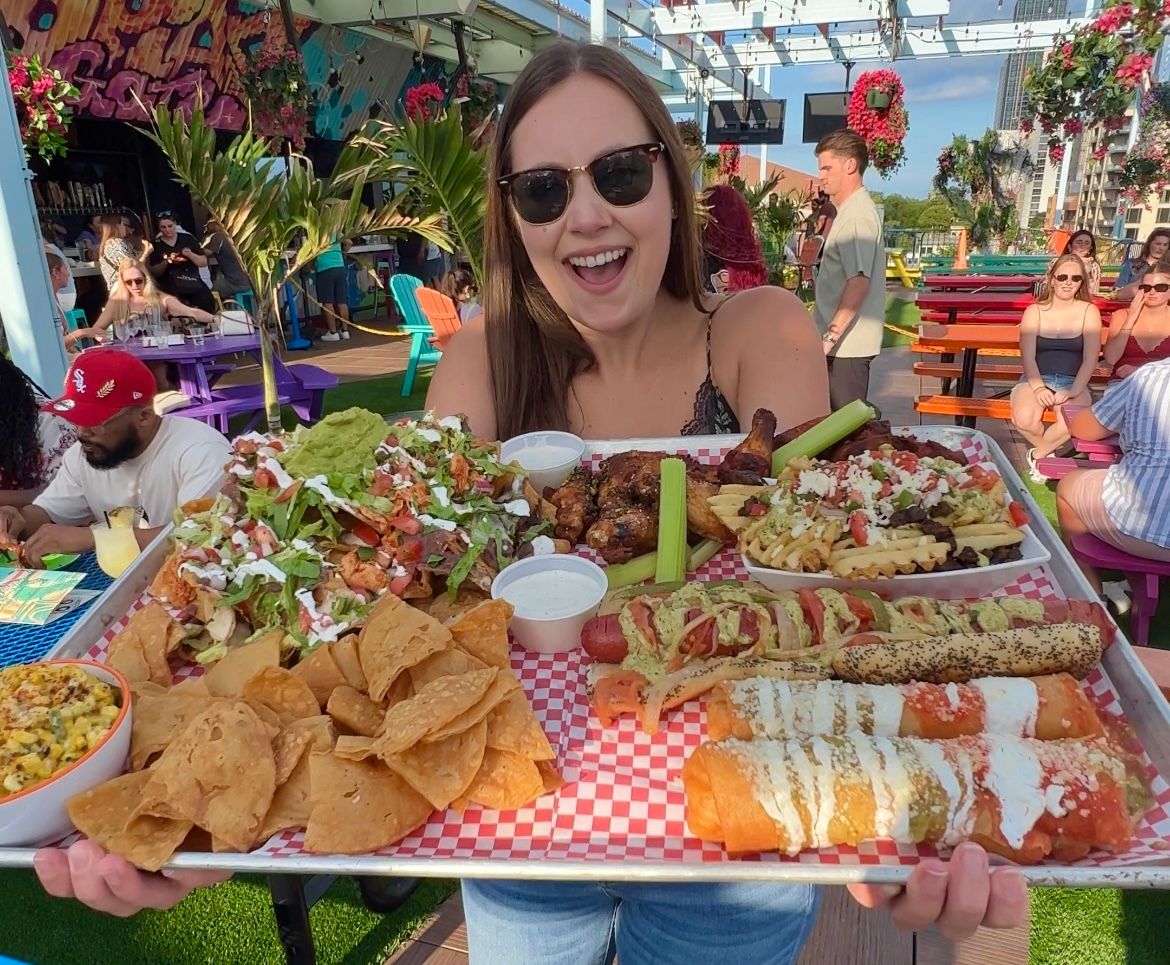 Utopian Tailgate: Head to Utopian Tailgate, the colorful rooftop bar above Second City in Old Town, and see if your crew can conquer The Feast of Burden. It’s $110 and serves 8–10 people with an over-the-top spread.