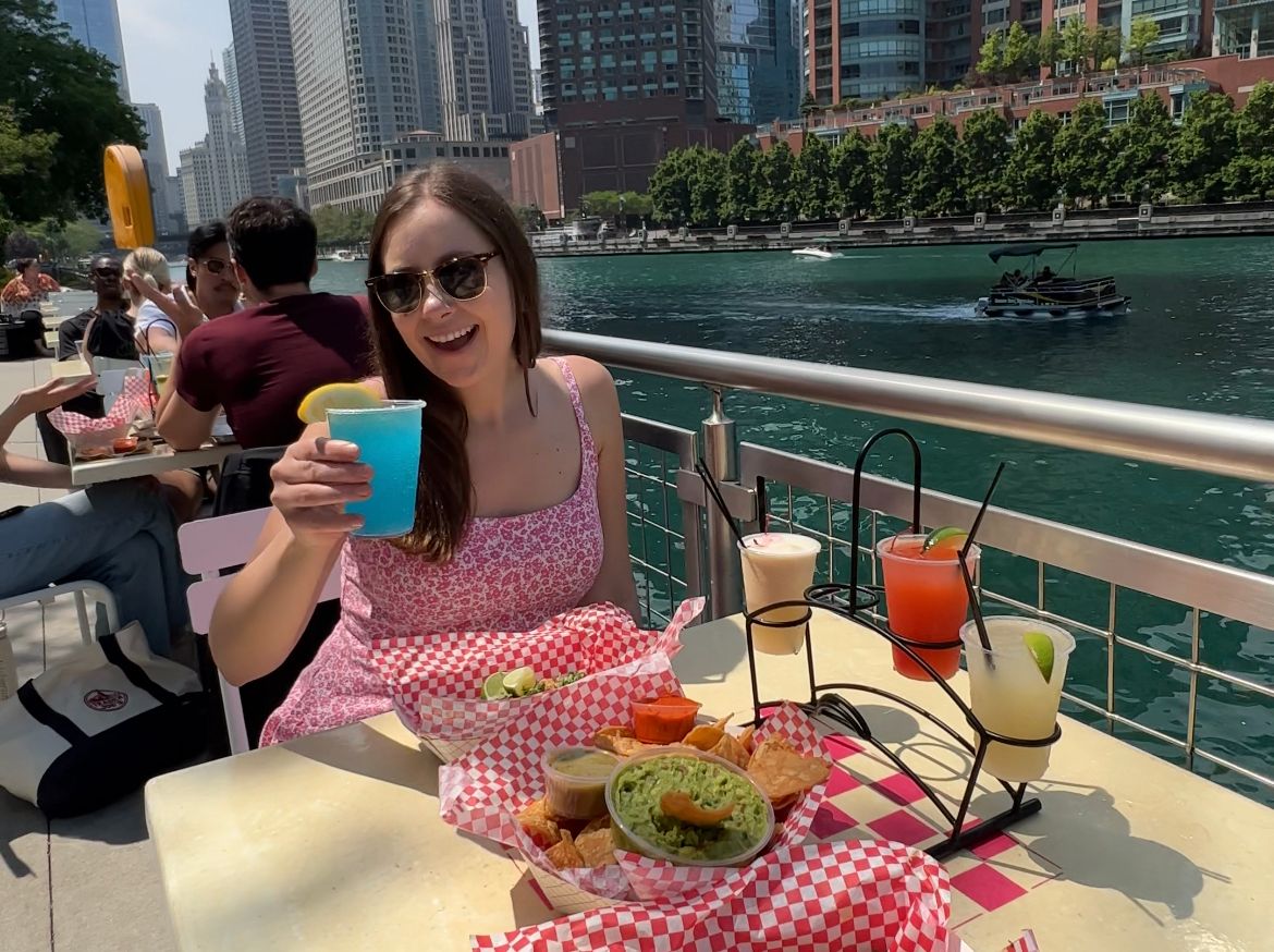 When you go, try their Margarita Flights as shown in the photo above. You can choose any four of their signature or frozen 10 oz cocktails for $45. Options include Margarita, Strawberry Margarita, Spicy Margarita, Paloma, Sneaky Lemonade, Riverwalk Long Island, and more. Just want one? Their cocktails come in 12 oz, 16 oz, 24 oz, and pitchers.