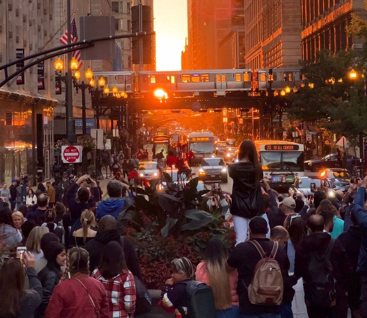 Chicagohenge: The famous twice-a-year Chicagohenge is back! On Monday, Sept. 22 the sun will align perfectly with Chicago’s east and west streets during the autumn equinox, creating one of the city’s best photo moments. You can catch it along corridors between Kinzie and Madison, with top views at Washington and Michigan by Millennium Park. Sunset is at 6:47 p.m., so arrive early for the best shot. You can also catch it nearly perfect this weekend on Sept. 20 and 21, depending on the weather. Here’s why it only happens twice a year.