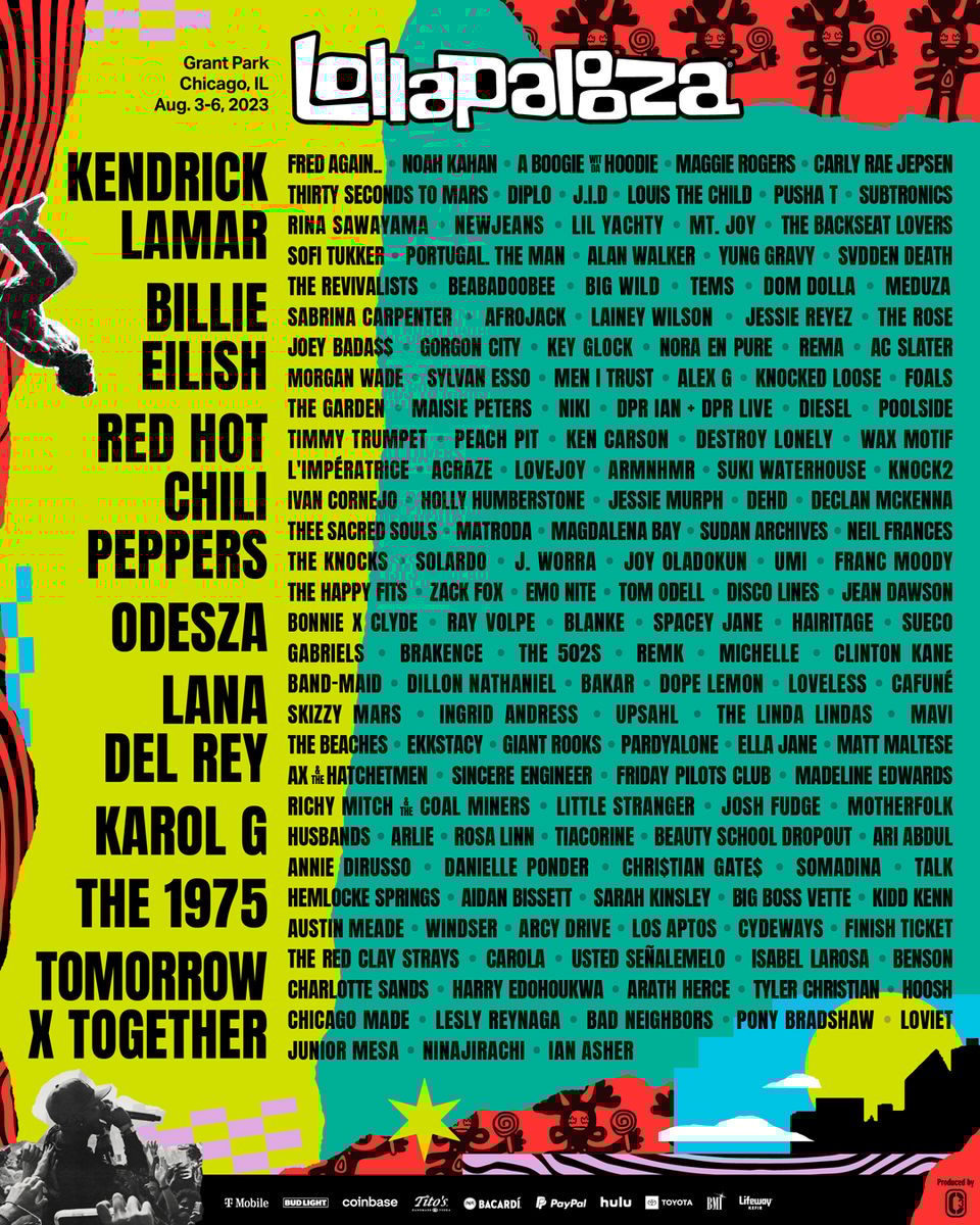 Lollapalooza: The summer's biggest event announced the 2023 lineup this week. Headliners include Kendrick Lamar, Billie Eilish, the Red Hot Chili Peppers and more. See below in the newsletter for more info including the entire lineup of performers.